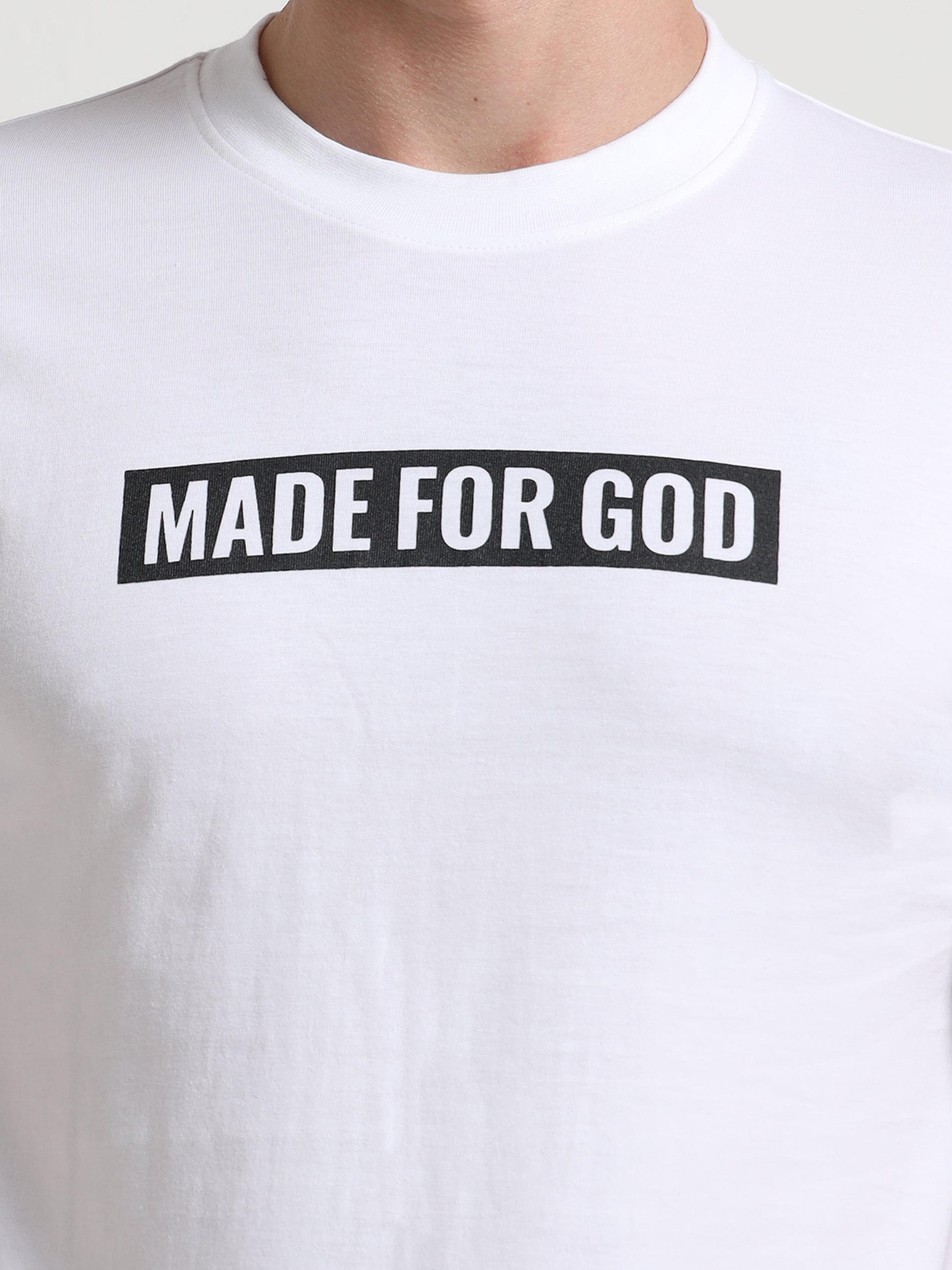 Front Design: Bold “MADE FOR GOD” statement in a crisp white box print across the chest, keeping it minimal yet striking.